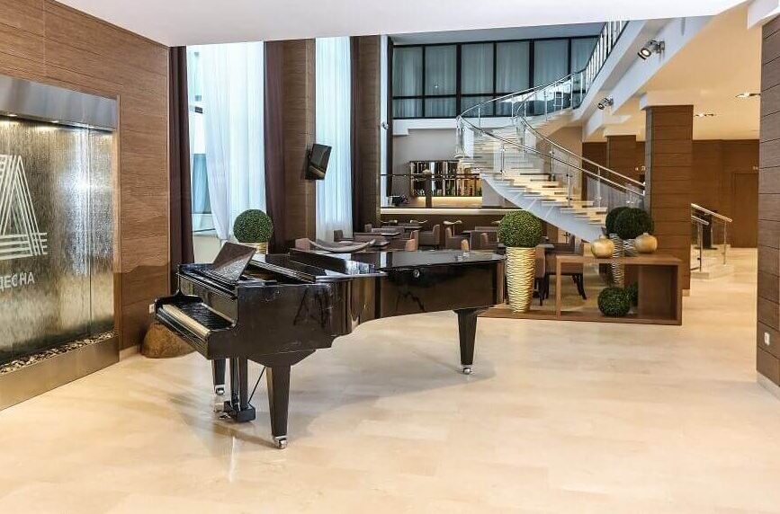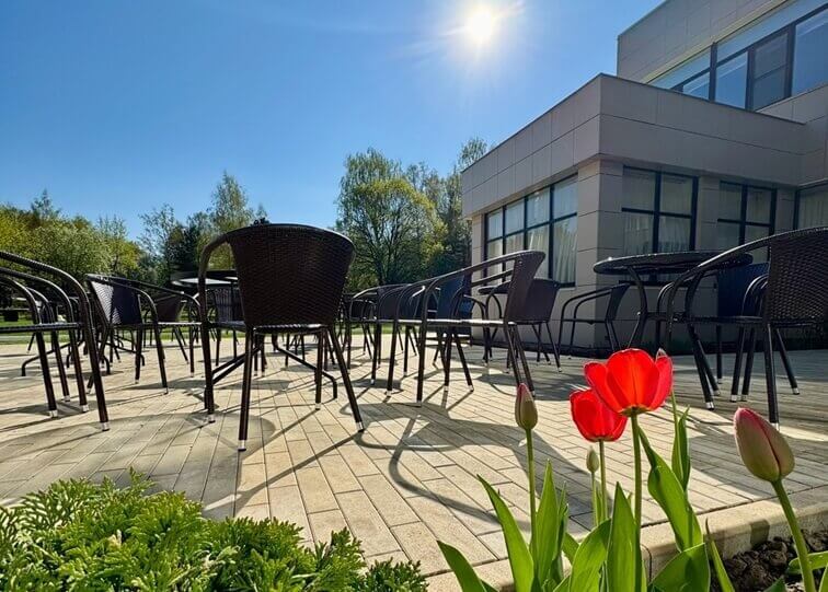 К услугам отдыхающих в санатории бассейн, сауна, фитнес-центр, теннисный корт, футбольное поле, спортивные площадки.