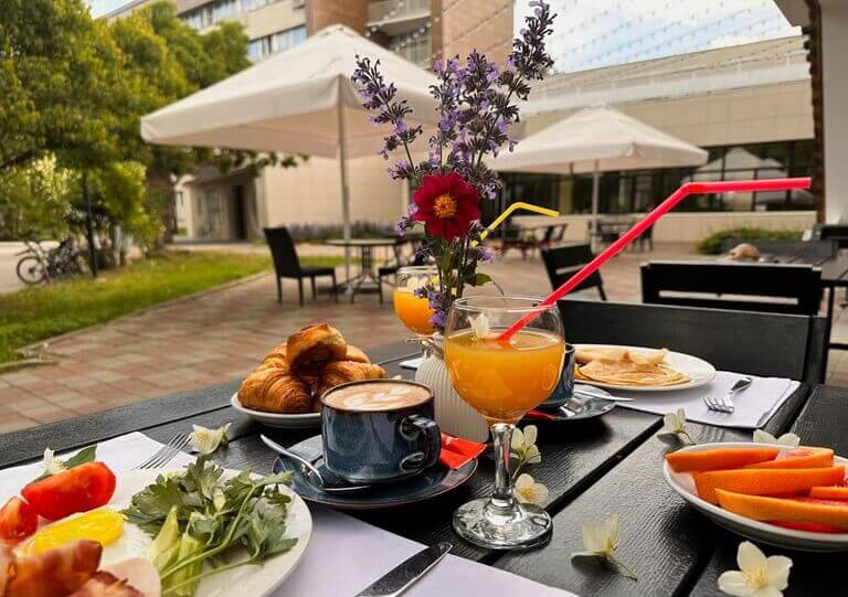 Питание гостей организовано по системе «Шведский стол» и проходит в зале Десна.