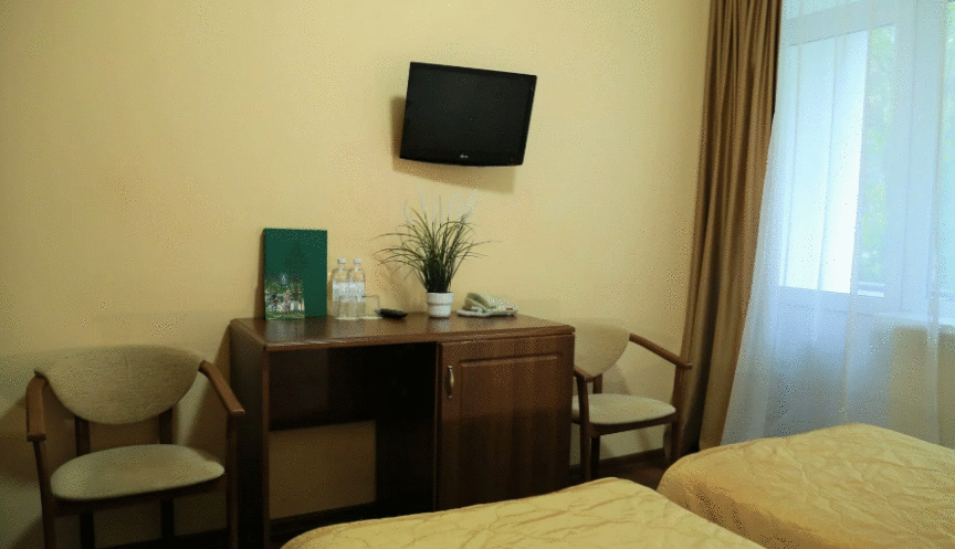Оснащение номера: односпальные кровати с ортопедическим матрасом 90*200. Возможно объединение в двуспальную, электронный замок, кондиционер (наличие в номере уточняйте у администратора), балкон с видом на лес, телевизор, телефон, мини-холодильник, Wi-Fi, чайный набор, шкаф для одежды, вешалки, настольная лампа, отопление, оснащение ванны, санузел, душевая кабина в ванной комнате, фен, тапочки, набор полотенец, гигиенические и косметические средства