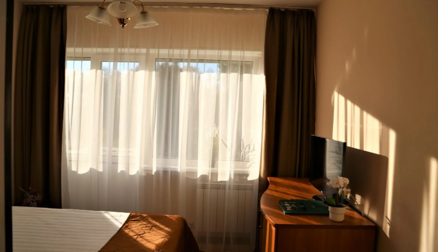 Однокомнатный номер в Главном корпусе. Оснащение номера: телевизор, настольные лампы, светильник, система безопасности, фен, холодильник, электронные замки. Ванная комната: банные полотенца, ванная комната, гигиенические средства, душ, косметические средства, раковина, туалетные средства, унитаз. Интернет Wi-Fi/телефон, односпальная кровать, багажная тумба, вешалки, зеркало, стол, туалетный столик, тумбы, шкаф для одежды, отопление, чайник, чайный набор