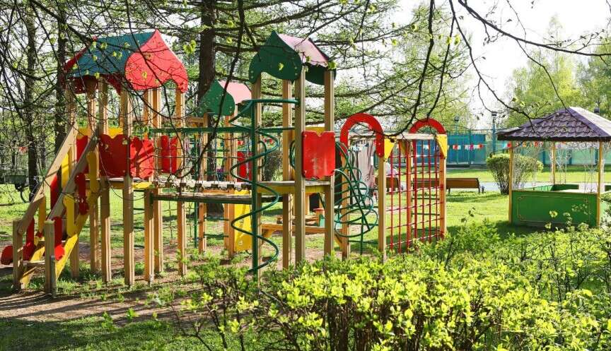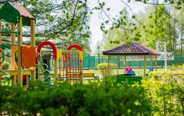 Для маленьких гостей есть все для активного отдыха и игр на открытом воздухе — качели, карусели, горки и песочницы.